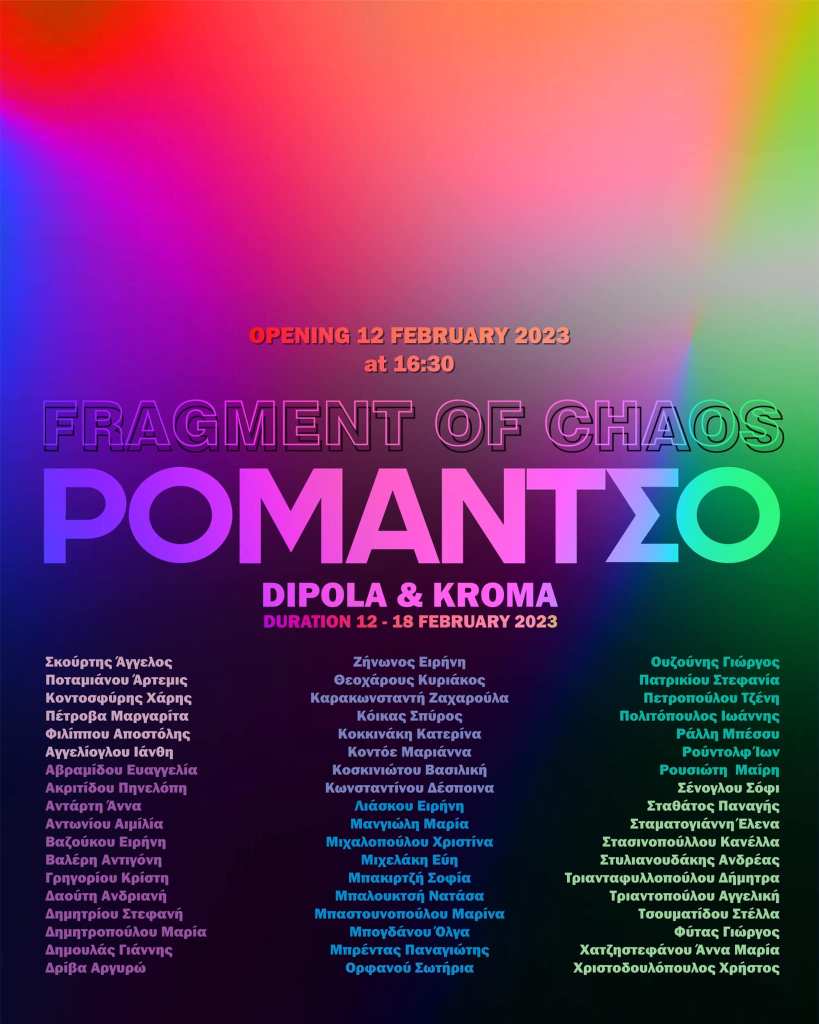 Φεβρουαρίου 2023 την έκθεση “Το Θραύσμα του Χάους/ Fragment of Chaos”, στο ΡΟΜΑΝΤΣΟ, στο παλαιό κτίριο