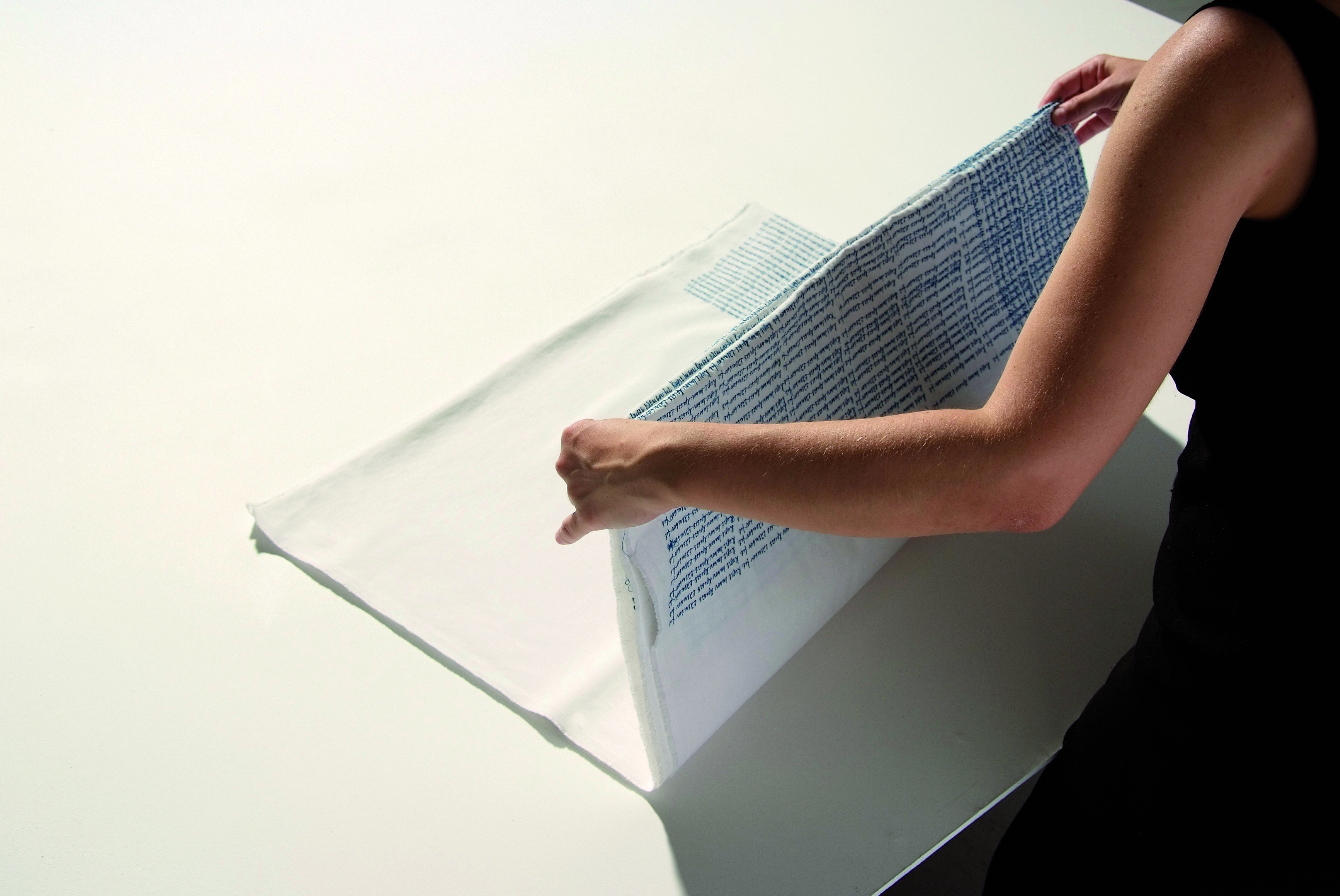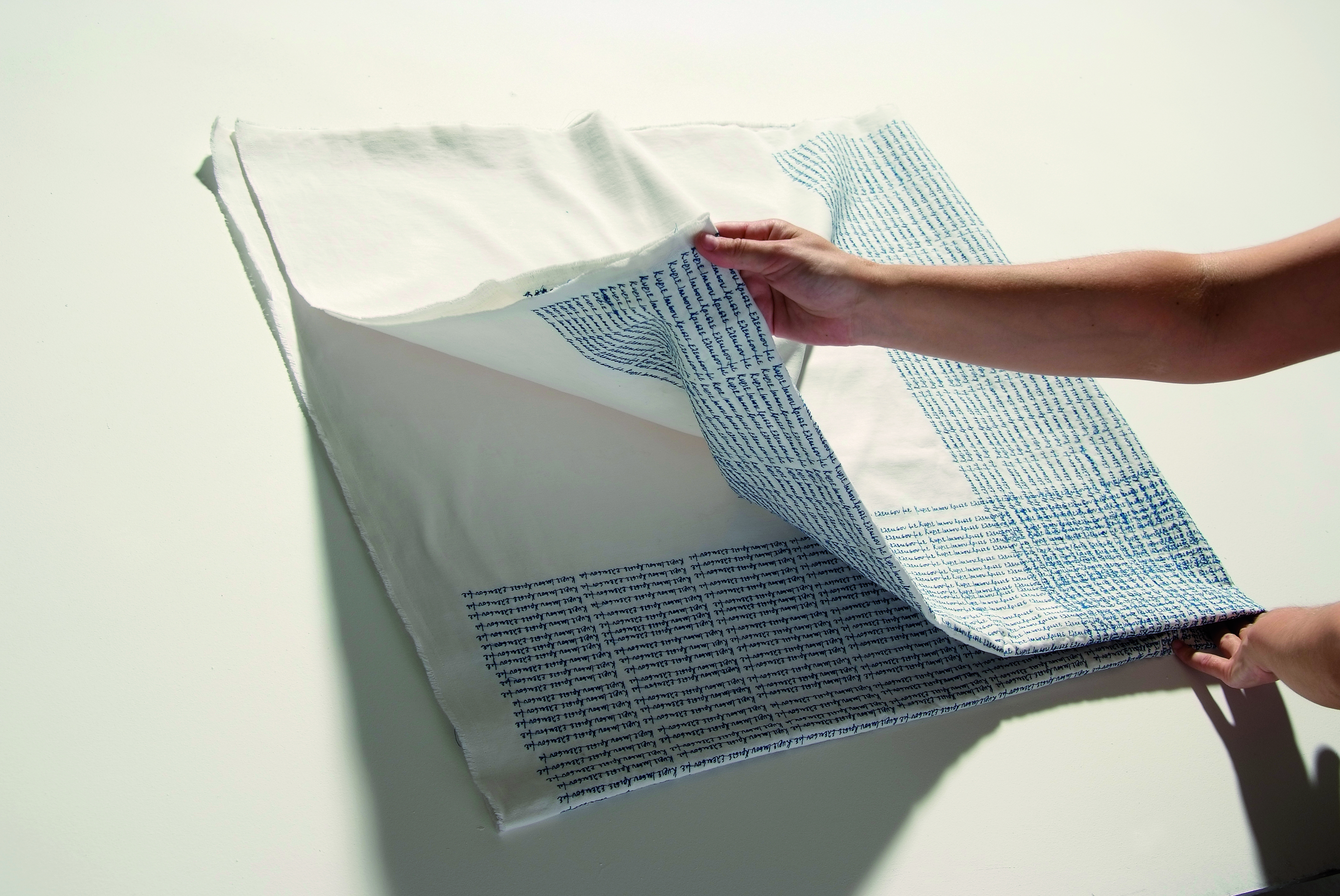 In the photographs (2010) is imprinted the process of the presentation of the artwok. Held performance of a few minutes in the summer of 2010 at the opening of the exhibition Oasis in A oases, at Megara. The photos were exposed with the folded fabric.
