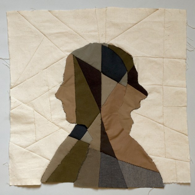 δύο πλευρές, Α’οψη, 2014, κλωστές και υφάσματα ραμμένα στο χέρι, 48,5×48,5εκ