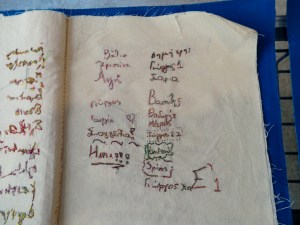 The academic year 2011-12 was the first year that I worked in the public school as an art teacher (PE08) and specifically in the 7th and 8th elementary school of Aspropyrgos. My experience was very intense, initially because it is very hard to be in a class and teach but also because it is a unique experience to know so many people, to communicate and ultimately to be associated with them. Each year this experience is really special. This art project is a tribute to this experience and a way to keep in my mind all these people. Each name is written by the same student and are embroidered by me with the colors that in my point of view fit on each student’s personality.